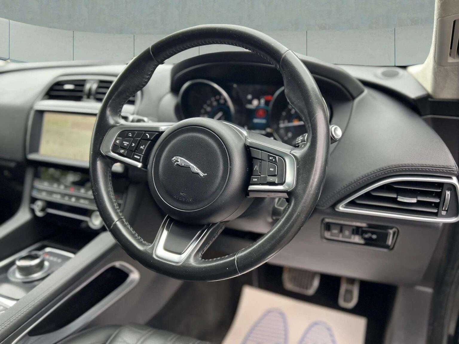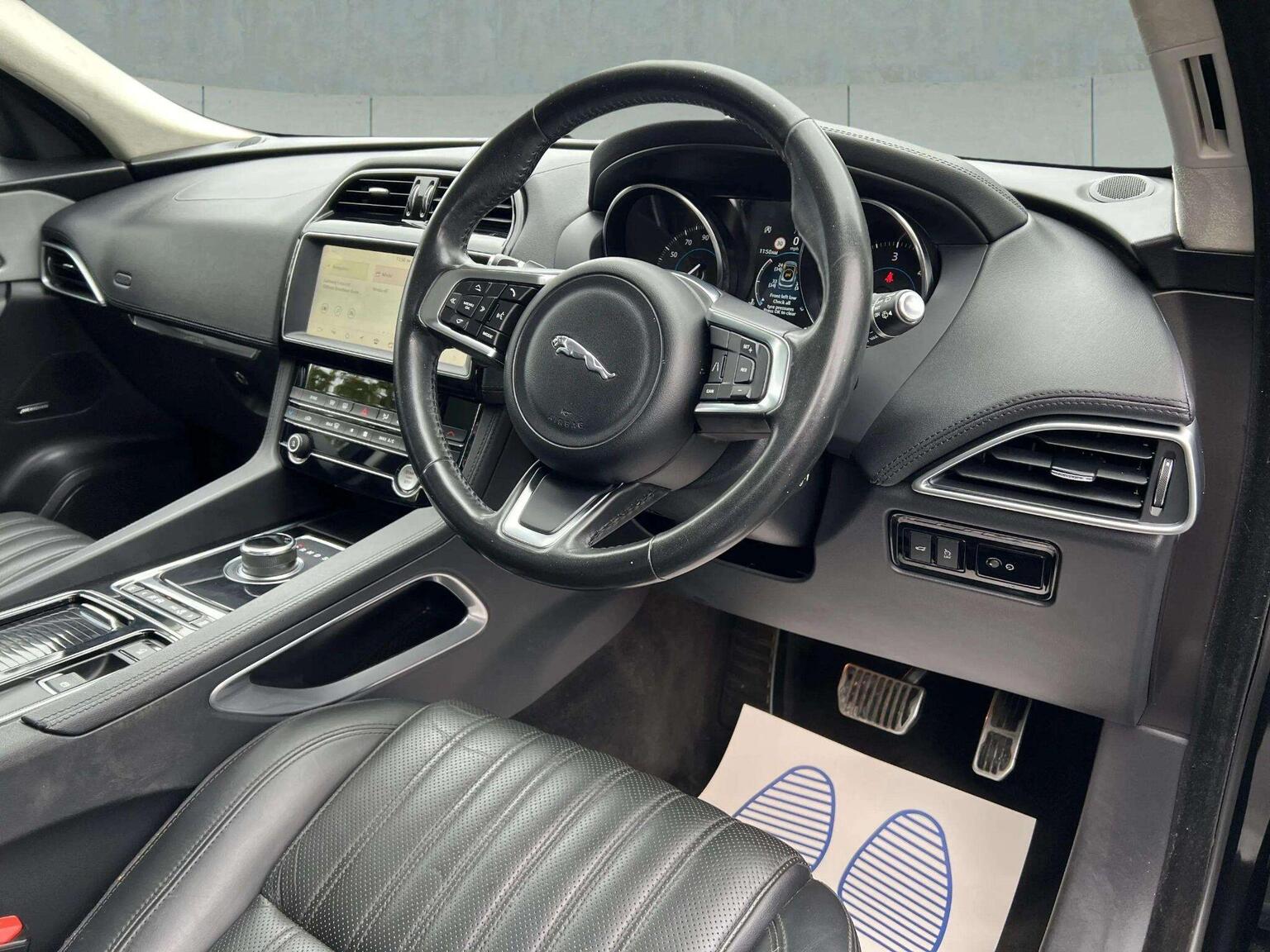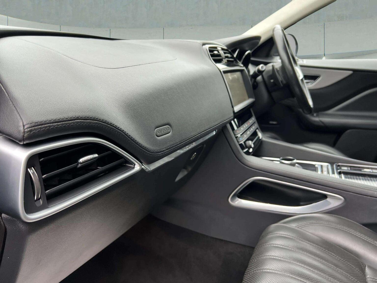 Power Boot Lid, Power Operated Child Locks, Power Sockets, Power Tailgate, Premium Carpet Mats, Protect for Warranty Period, Push Button Start, Rain Sensing Windscreen Wipers, Rear Air Vents, Rear Armrest with Twin Cupholders, Rear F-Pace Badge, Rear Fog Lights, Rear Parking Aid, Rear View Camera, Remote Premium for Warranty Period, Reversible Boot Floor - Carpet-Rubber, Satin Chrome Touchscreen Surround, Seat Belt Reminder, Seats - Luxury, Second Row Centre Headrest, Single View 8in Touchscreen for Touch, Soft Grain Leather Sport Steering Wheel, Speed Proportional Steering, Start Up Sequence with Movement - Dials and Lighting, Steering Wheel - Black Paddles, Steering Wheel - Multi-Function, Torque Vectoring, Traffic Sign Recognition with Intelligent Speed Limiter, Trailer Stability Assist, Trip Computer, Twin Front Cupholders with Cover, Tyre Pressure Monitoring System, Valet Mode, Variable Intermittent Wipers, Vehicle Immobiliser, Wi-Fi Hotspot, Xenon Headlights with LED Signature, 10-Way Electric Front Seats, 19in Alloy Wheels - 7 Split-Spoke Style 7012 - Silver, 2-Zone Climate Control, 25d AWD Badge, 3-Flash Lane Change Indicators, 325mm Front Brakes, 40-20-40 Split Fold Rear Seat, 5in Display with Instrument Panel, ABS - Anti-locking Braking System, AEB - Autonomous Emergency Braking, ASPC - All Surface Progress Control, Airbags - Front Side, Airbags - Full Length Side Window Curtain, Ambient Interior Lighting, Approach Illumination, Auto-Dimming - Power Fold - Heated Door Mirrors with Approach Lights, Auto-Dimming Interior Rear View Mirror, Bluetooth Audio Streaming, Bluetooth Telephone Connectivity, Body-Coloured Rear Bumper with Grained Black Valance, Brake Pad Wear Indicator, Centre Console - Side Stowage, Centre Console - Storage Surround Finishers - Satin Chrome, Centre Console with Armrest, Chrome Side Power Vents, Chrome Side Window Surround, Cruise Control with Speed Limiter, Digital Audio Broadcast - DAB - Radio, Door Mirrors - Body Coloured, Door Trim - Luxtec, Dual Tailpipes with 75mm Finishers, Dynamic Stability Control and Traction Control, Dynamic Volume Control, EBA - Emergency Brake Assist, ECO Driving Style Assistant, EPAS - Electric Power Assisted Steering, EPB - Electronic Parking Brake - Drive Away Release, Electric Windows - Front and Rear with One-Touch Open-Close and Anti-Trap, Fixed Panoramic Roof, Front Airbags with Passenger Seat Occupant Detector, Front Fog Lights, Front Headrests - Jaguar Leaper Embossing, Front Parking Aid, Full Length Satin Chrome Roof Rails, Gloss Figured Ebony Veneer, Grained Black Door Claddings, Grained Black Radiator Grille with Chrome Surround, Green Tinted Glass, Hazard Lights Under Heavy Braking, Headlining - Morzine - Light Oyster, Heated Front Seats, Heated Front Windscreen, Heated Rear Window, Hill Launch Assist, Hook in Loadspace, ISOFIX Rear, InControl Apps, Interior Front Door Handles with Separate Locking Switches, Jaguar Script and Leaper, Jaguar Tyre Repair System, JaguarDrive Control, Keyless Entry, LED Tail Lights, Lane Departure Warning, Loadbay - Luggage Tie Downs, Lockable Glovebox with Jaguar Script Finisher, Luxtec Wrapped Instrument Panel Topper, Manually Adjustable Steering Column, Meridian Sound System - 380W, Metal Treadplates with Jaguar Script, Navigation System, Outside Temperature Gauge, Overhead Lighting Console, Passive Front Head Restraints, Perimeter Alarm